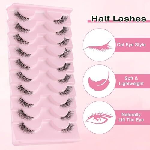 - Elevate your gaze with 10 pairs of reusable, natural-looking cat-eye lashes for everyday glamour.