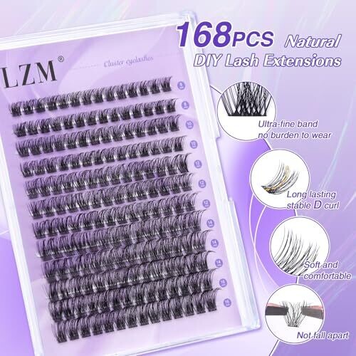 Lzm Lash Clusters deliver a wispy, natural look with pre-sectioned clusters for easy DIY application at home. Made from hypoallergenic, cruelty-free fibers; lightweight and comfortable. Lengths range 8–16 mm for natural to dramatic styles, reusable with proper care.