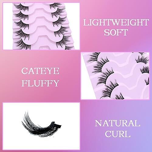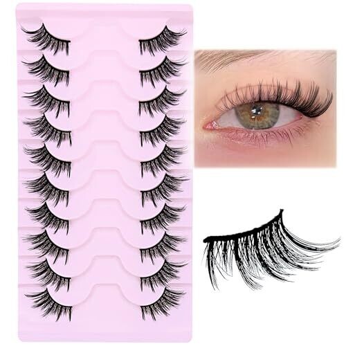 Slsxnl Half Lashes Natural False Eyelashes Clear Band Wispy Cat Eye 10 Pairs