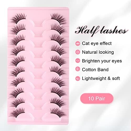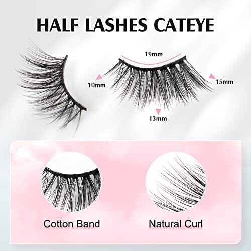 Achieve a chic outer-corner cat-eye with lightweight half-strip lashes. These natural-looking lashes blend with your own, are easy for beginners to apply, reusable with proper care, and can be cut or layered for extra volume.