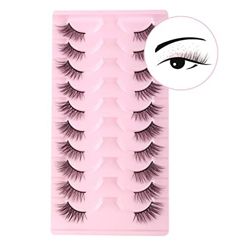 Natural Look Half Lashes Cat Eye 16 Mm Wispy Thin Band Manga Lashes 10 Pairs