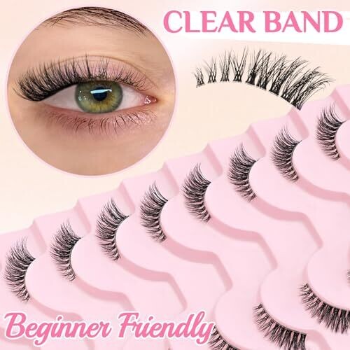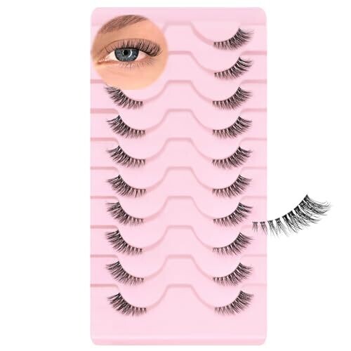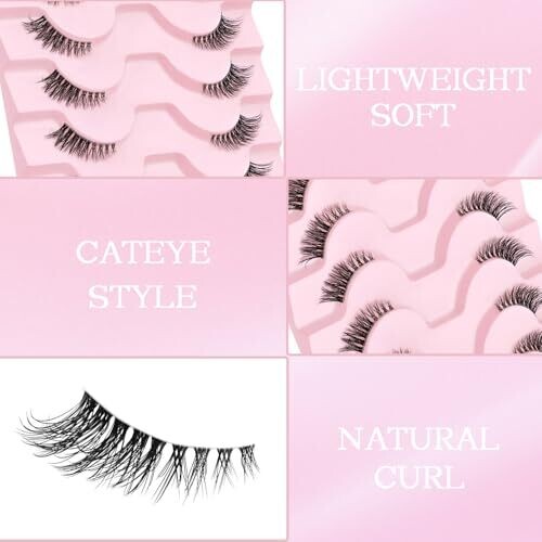 Slsxnl Half Lashes Natural False Eyelashes Clear Band Wispy Cat Eye 10 Pairs