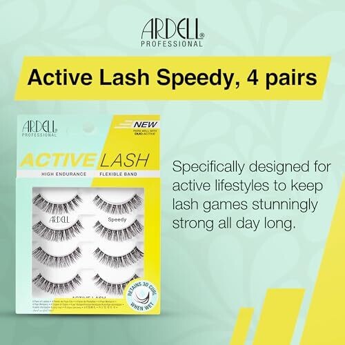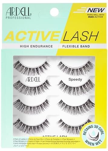 Ardell Active Lash - Speedy False Lashes, Water Resistant, Strip Lashes, 4 Pairs
