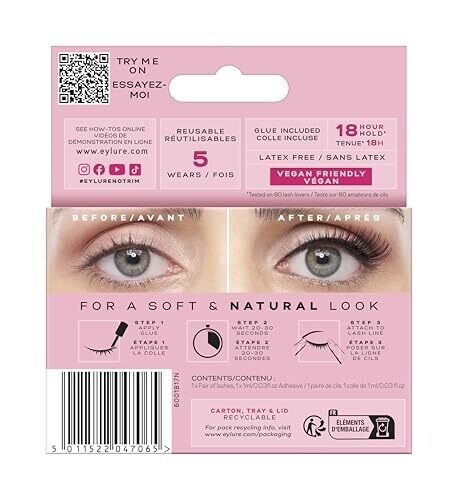 • Lightweight synthetic lashes designed for all-day comfort and easy wear.