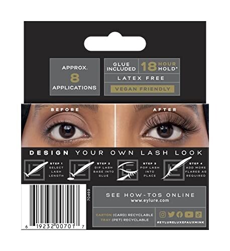 - Eylure Luxe Faux Mink Individual Clusters offer a luxurious, silky lash flare for a lush, customized look.