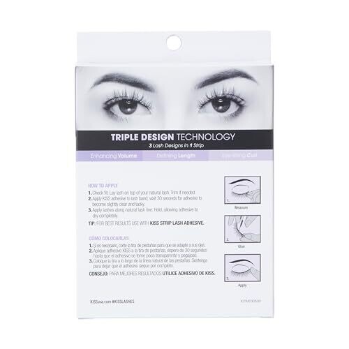 Get dramatic, multi-dimensional lashes with the Kiss Lash Couture Triple Push Up Collection Multipack. These reusable 3D lashes offer triple design technology for multi-angle length, delivering volume and definition in the Babydoll style with four pair sets.