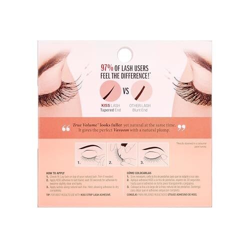 Elevate your lash game with Kiss True Volume Lash Ritzy for a luxe, glamorous look. Ultra-lightweight design provides all-day wear, blending with natural lashes for dramatic volume and a wispy effect. Easy application, secure fit, cruelty-free, salon-quality lashes you can DIY.