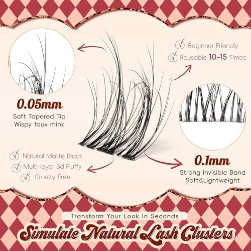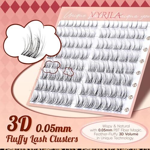 • Vyrila Lash Clusters 0.05Mm PBT Fiber, 0.1Mm Invisiband D Curl
