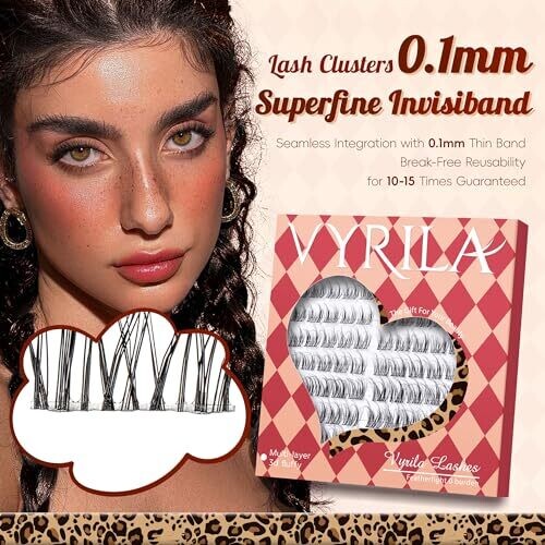 Vyrila Lash Clusters 0.05Mm PBT Fiber, 0.1Mm Invisiband D Curl