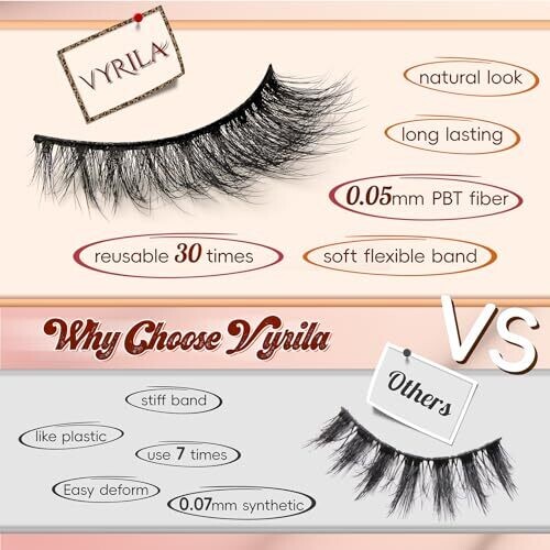 Vyrila Wispy Lashes 0.05Mm PBT Fiber Eyelashes, 0.2Mm Superfine Band Cat-Eye False Lashes (Luxe-5 Pairs In 1 Pack)