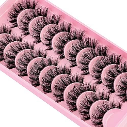 Aimall 10 Pairs Russian D Curl Strip Lashes 3D Wispy Fluffy Handmade Reusable Synthetic Mink Eyelashes 6–10Mm Full Volume Set
