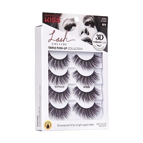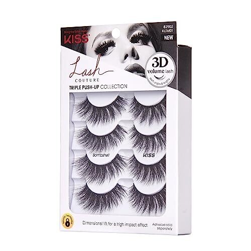 Kiss Lash Couture Triple Push Up Collection Multipack, 3D Volume Lashes, 4 Pairs